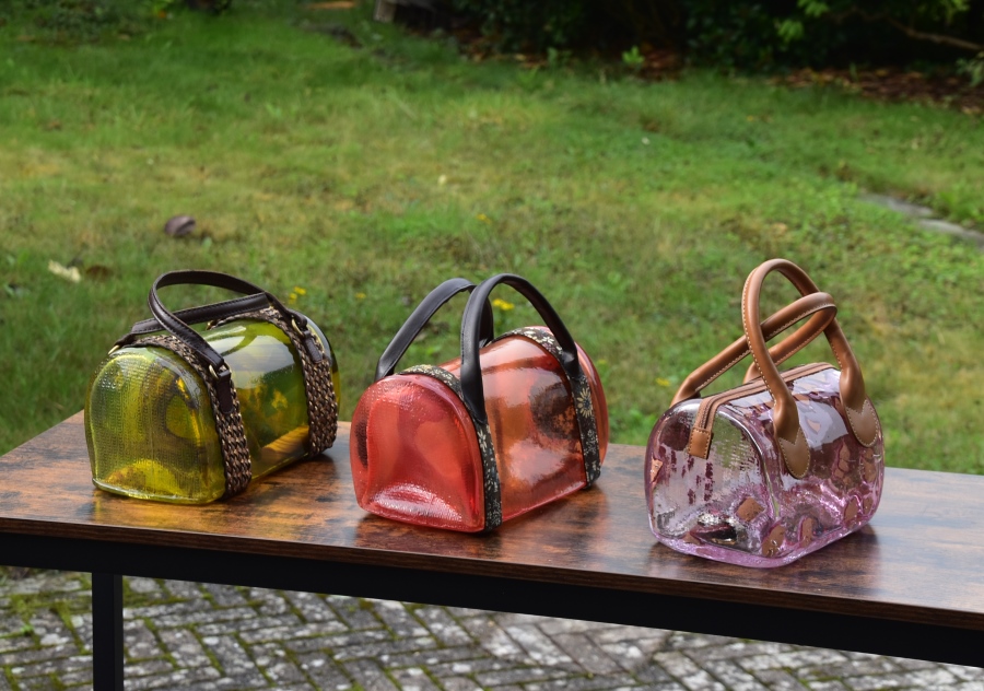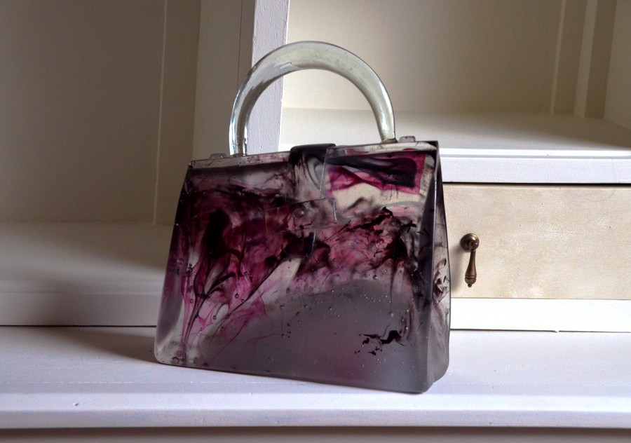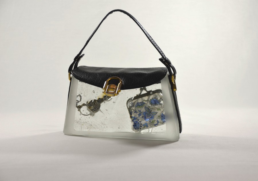 The use of handbags is in trend since ancient times and has roots in art, design and fashion. As well as being practical items, handbags are also the keepsakes of secrets and dreams. They are extremely personal inside and out. Women use them as a luxury item to express their personality, so we can say that a handbag is much more than a bag that contains objects. The objects inside are also a fantasy world on their own. Everything a girl or a woman keeps in her purse is revealing her intimacy. Perfume, lipstick or other make-up are as necessary as keys or money. These object are mostly well chosen and tell a lot about the story of the owner. Handbags have been inspirations to many writers, designers and artists in general, not only for their many forms but certainly for the secrecy of their content. This is why glass handbags can be so interesting, they are transparent or suggest transparency. The eye of the observer will take a closer look and keep his attention until he thinks he can see what's inside. Just like the curiosity of a child looking in her mother's handbag...hoping to find treasures.