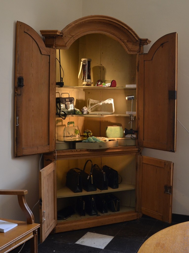 Ontdek hier de inhoud van enkele kasten vol glazen handtassen en