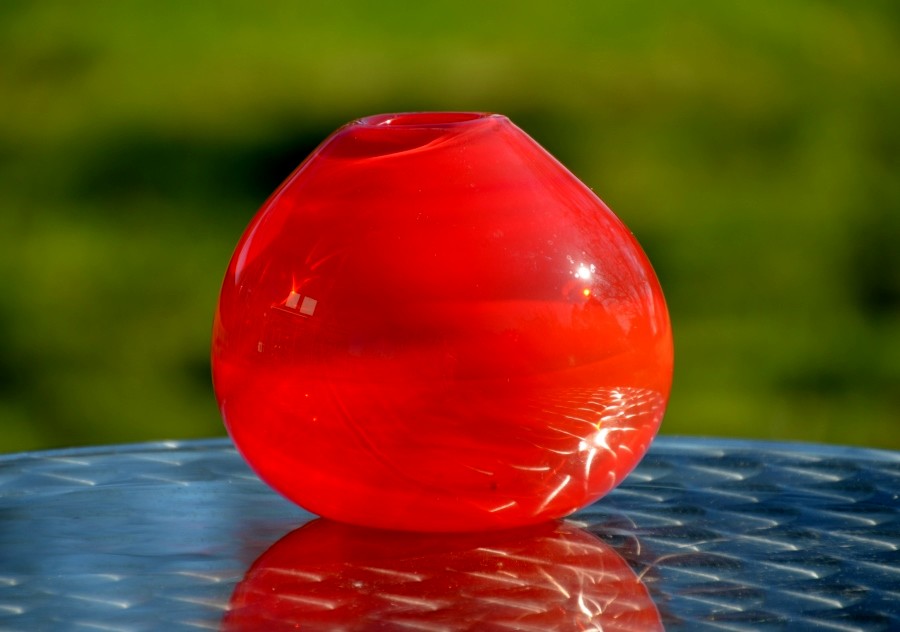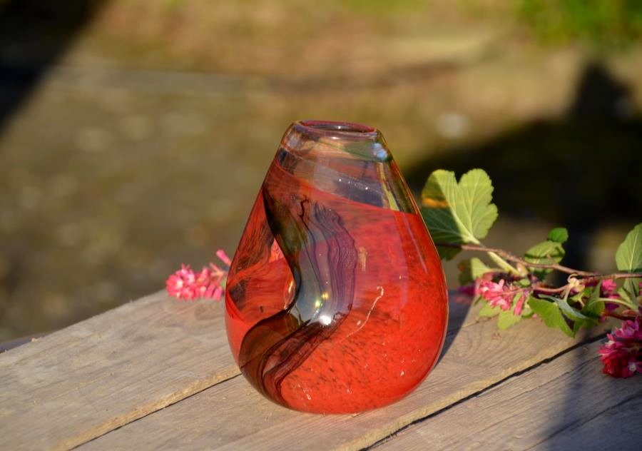 Rode mondgeblazen vaasjes