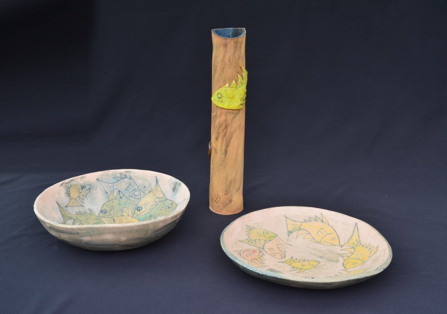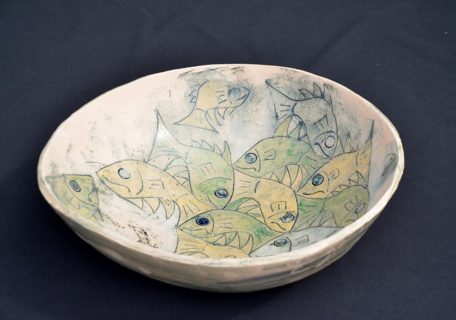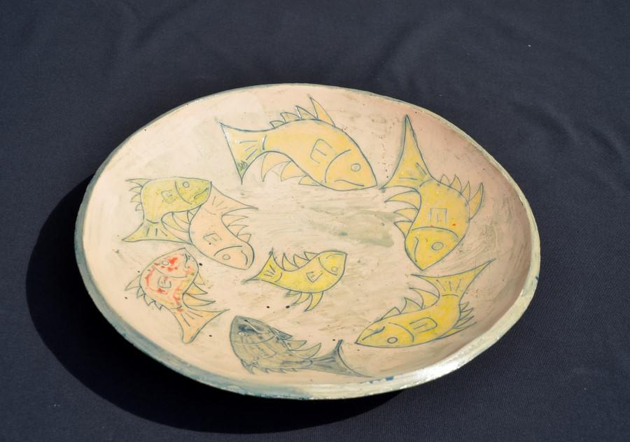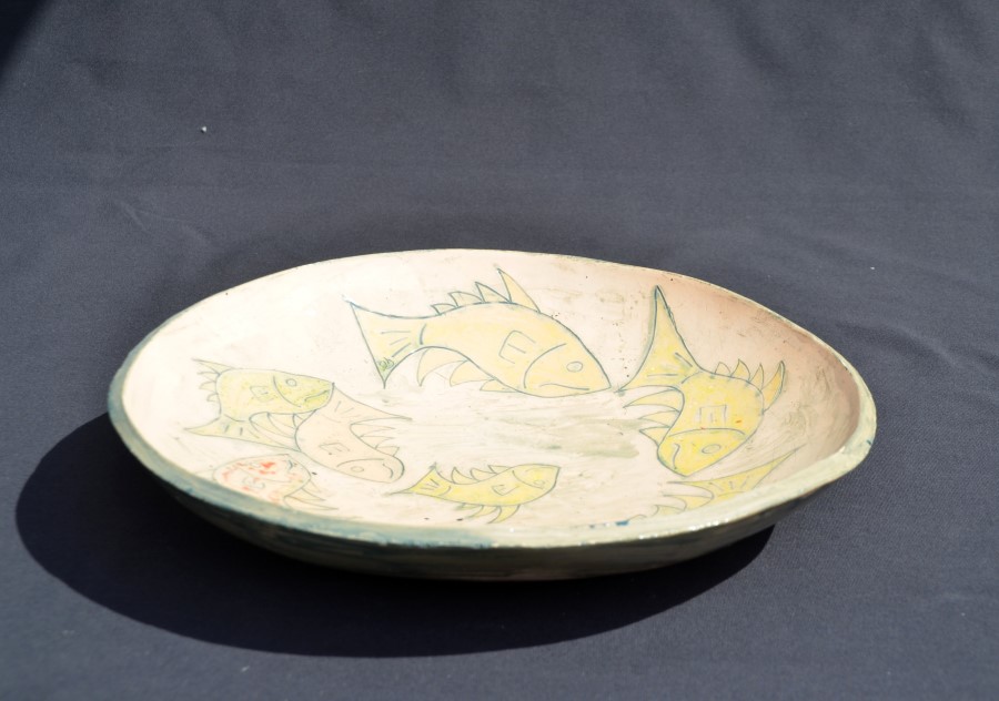 schaal met vismotief in keramiek